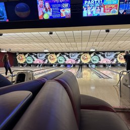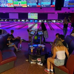 Dropped by the other day on the weekday afternoon when it wasn't as crowded. Located next to the Boomers nearby UCI and has plenty of parking. They charge by the hour and not per person at a rate of $40. Shoe rentals are about $7. It's ideal to come in a bigger group since they charge per lane. There's plenty of lanes available as well as a small arcade, bar, and eatery that serves snacks and basic foods such as pizza or sandwiches. The lanes seemed to be well maintained and I enjoyed when they shifted to more colorful lights later in the afternoon. Some of the bowling themes on the screen are a little dated but not a big issue. This spot is on the pricier side if you come when they don't have a special going but you're bound to have a good time. Solid yearly bowling outing.